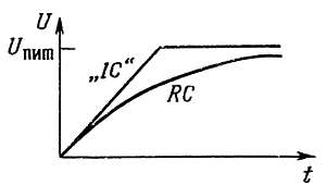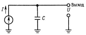 Напряжение на резисторе R равно Uвх — U, следовательно, I = C(dU/dt) = (Uвх — U)/R. Если обеспечить выполнение условия U << Uвх за счет большого значения произведения RC, то получим C(dU/dt) ~= Uвх/R или