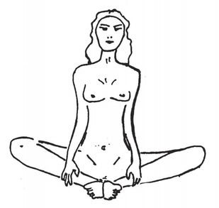4. Исходное упражнение — сидя на полу, ступни соприкасаются, колени разведены как можно шире, пятки как можно ближе к паху (рис. 43).