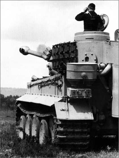 «Тигр» ранних выпусков. Хорошо видны мортирки для стрельбы дымовыми гранатами, установленные на башне и по периметру корпуса, а также левый инерционный воздушный фильтр типа Feifel.